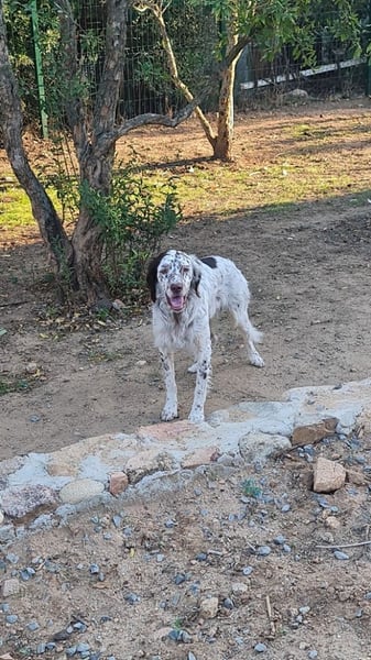 Sirio ist ein fröhlicher junger Setter, der gemeinsam mit seiner Mama von einem Jäger auf einem Stück Land im Nirgendwo gehalten wurde, weil dieser aufgrund gesundheitlicher Probleme nicht auf Jagd gehen und den jungen Hund dafür ausbilden konnte. Ein Stück Land im Nirgendwo ist natürlich auch nicht der richtige Ort für einen jungen Hund, ebenso wenig für seine Mama. Das Glück hat die beiden entdeckt und eine mit uns befreundete Tierschützerin auf sie aufmerksam gemacht. Sie hat beide zu sich und ihrer Familie geholt.