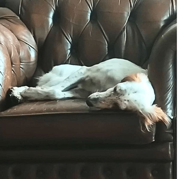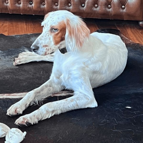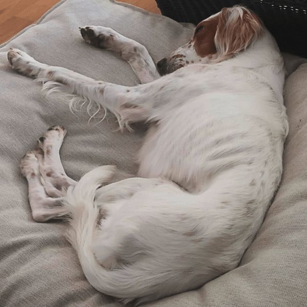 Ganz settertypisch schlägt in ihr ein kleines Jägerherz, das draußen schnell höher pocht. Dann ist die Welt einfach zu spannend, um an anderes zu denken – sogar an ihr Geschäft. Im Haus und Garten dagegen gelingt es ihr immer häufiger, sich zu entspannen, und sie kann sich bereits für längere Zeit ablegen und zur Ruhe kommen.