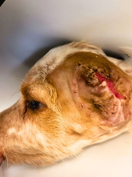 Sein Jäger hat das damals erst einige Wochen alte Hundekind zwar nicht selbst so zugerichtet, doch er trägt trotzdem die Schuld an dem, was passiert ist. Inzwischen lebt der kleine Süßi auf seiner Pflegestelle in 25569 Bahrenfleth.