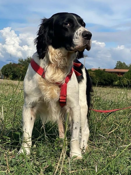 Vielleicht ist das vorhandene Körbchen von einem lieben Vorgängerhund traurig verwaist in der Ecke. Oder ist nun die Zeit gekommen, um sich einen lang gehegten Wunsch nach einem kleinen Hund zu erfüllen? - Für dieses gemütliche Plätzchen an Ihrer Seite möchte sich der herzensgute, sanfte und ruhige Rüde Brando bewerben! Der hübsche schwarz-weiße Brando ist im Herbst seines Lebens angekommen und hat vermutlich zunächst als Jagdhund sein Futter verdient. Nun im höheren Alter wurde Brando herzlos aussortiert und konnte durch eine aktive Tierschützerin vor einem Lebensende in einem Betonzwinger eines Hundelagers bewahrt werden. Da die Jagdhunde in Italien ausschließlich im Zwinger gehalten werden, hatte der sanfte Brando vermutlich in der letzten Zeit nicht mehr viel Bewegung und Auslauf, um seine Muskeln zu stärken. So hat Brando nur wenig Muskulatur an der Hinterhand und kann keine ausgedehnten Spaziergänge mehr laufen. Vermutlich kann sich dies mit Training und aufbauender Bewegung wieder etwas verbessern. Auch sind Brandos Augen leicht eingetrübt und wir vermuten Grauer Star, aber davon lässt sich Brando nicht wirklich aus der Fassung bringen. Brando gehört zu der tollen Rasse der Springer-Spaniel und tatsächlich ist er ein begeisterter Wassersportler und hüpft immer noch gerne in das frische Nass.