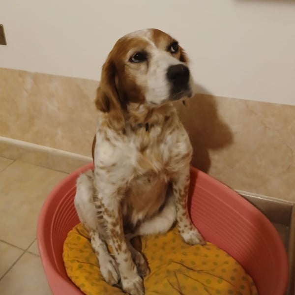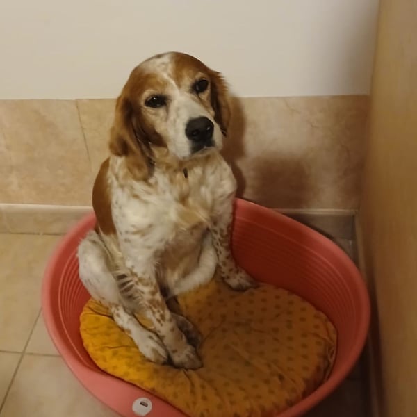 Typisch Epagneul Breton trägt Diana die Nase gern tief am Boden – sie liebt es, draußen unterwegs zu sein, Spuren zu entdecken und die Natur zu erkunden. Diese Rasse gilt als intelligent, aufmerksam, sanft im Wesen und gleichzeitig energiegeladen. Genau das bringt Diana mit: Sie ist verspielt, neugierig, lebhaft und sehr sozial. Artgenossen fordert sie freundlich zum Spielen auf, und im Haus zeigt sie sich von ihrer absolut unkomplizierten Seite: Alleine bleiben ist bei Monika kein Problem – sie bellt nicht und zerstört nichts.