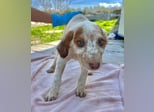 Muffin ist ein bezaubernder kleiner Rüde, der mit seinem braun-weißen Fell, den etwas längeren Ohren und den hübschen kleinen Flecken sofort ins Auge fällt. Er ist einfach eine richtige Zuckerschnute.
