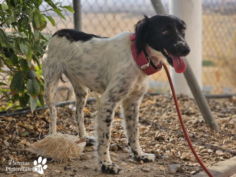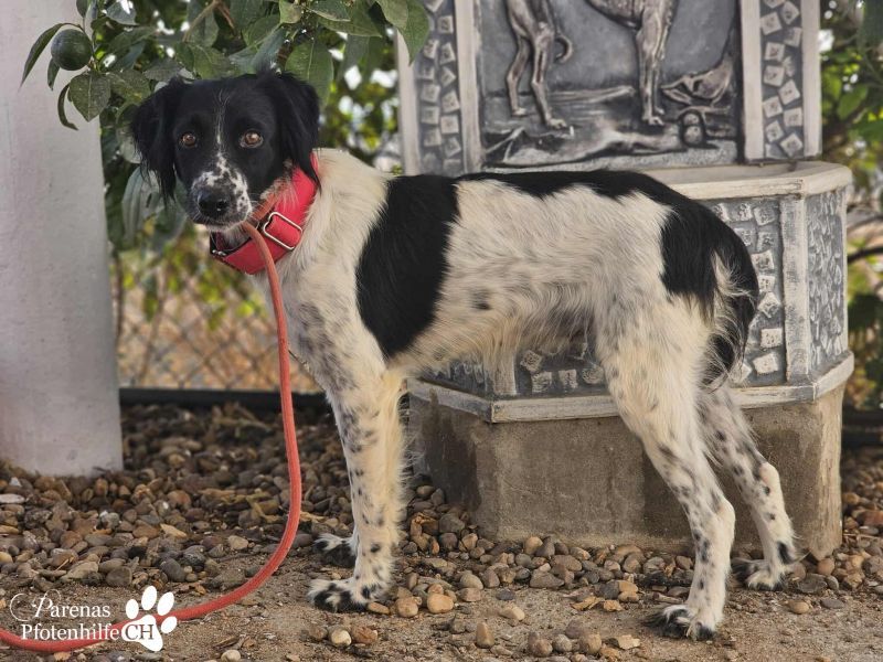 Bei Hilaria haben wir es mit einem sehr gelungenen Betronen-Mix zu tun. Anfangs war die Hündin im Refugio noch etwas schüchtern, zurückhaltend und unterwürfig, konnte diese Eigenschaften aber gegenüber dem Team schnell ablegen - das wird in ihrem eigenen Zuhause nicht anders sein. Ansonsten zeichnet sich Hilaria durch ein freundliches, verschmustes und fröhliches Wesen aus. Ihre Art, Konflikten aus dem Weg zu gehen, trägt dazu bei, dass sie sich wunderbar mit anderen Hunden jeder Größe sowie Katzen versteht.