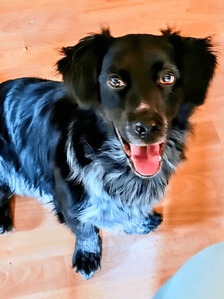 Er ist ein ausgesprochen freundlicher, intelligenter und fröhlicher Hund, der voller Energie und Lebensfreude steckt. Als Bretonenmischling bringt Wesley Jagdtrieb mit, lässt sich damit aber gut händeln. Wer Bretonen kennt, weiß, dass Wesley zu seinem Glück geistige und körperliche Auslastung braucht, er ist definitiv kein Couchpotato! Bretonen sind intelligente Hunde, die sich eng an ihren Halter binden. Sie sind sensibel und feinfühlig. Die kleinen Vorstehhunde haben ein hohes Energielevel. Trotzdem sind sie verschmust und liebevoll und wollen immer das Beste geben. Als Jagdhunde sind Bretonen sehr lauffreudig, zwei Stunden Spaziergang täglich macht sie glücklich. Auch an Dummytraining, Mantrailing oder Fährtenarbeit hätte Wesley seine Freude.Wesley liebt menschliche Gesellschaft und möchte am liebsten immer und überall mit dabei sein. Wesley ist ein temperamentvoller Hund - hat er sich ausgepowert kann er aber auch gut entspannen. Auch das Alleinbleiben klappt gut, wenn er ausgelastet ist. Lange Spaziergänge und Spielstunden mit seinen Hundefreunden liebt Wesley sehr. Wesley lebt zurzeit mit einem weiteren Hund, zwei Katern und 2 Kindern zusammen. Männer findet er manchmal anfangs etwas unheimlich. Das legt sich aber meistens sehr schnell und die Neugierde siegt. Hat er erst einmal seine Scheu überwunden, ist Wesley lieb und zutraulich und freut sich über Aufmerksamkeit und Streicheleinheiten.