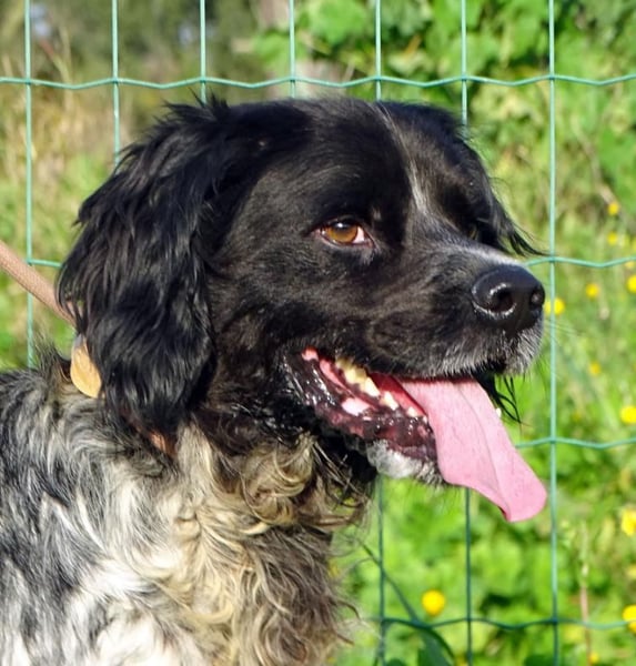 Xico ist ein Rüde vom Typ Bretonischer Spaniel, geboren 2020, mit einer Schulterhöhe von etwa 50 cm. Er kam zunächst in ein städtisches Tierheim und lebt derzeit in einem privaten Tierheim in Portugal, wo er auf ein eigenes Zuhause wartet.