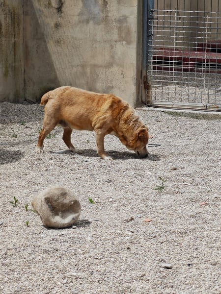 Estrella war zusammen mit Alma in den spanischen Bergen unterwegs, bis jemand die Beiden mit Futter anlocken konnte und bei den spanischen Kollegen abgegeben hat. Estrella ist eine offene und agile Hündin, die sich über menschliche Zuneigung sehr freut. Freudig rennt sie auf einem zu, wenn man sich in die Hocke begibt oder sie ruft. In dem Video sieht man, wie toll Estrella und Alma auf Kinder reagieren. Egal wie groß die Hand ist, ob nun von einem Erwachsenen oder eine Kinderhand, Hauptsache es gibt genug Streicheleinheiten.