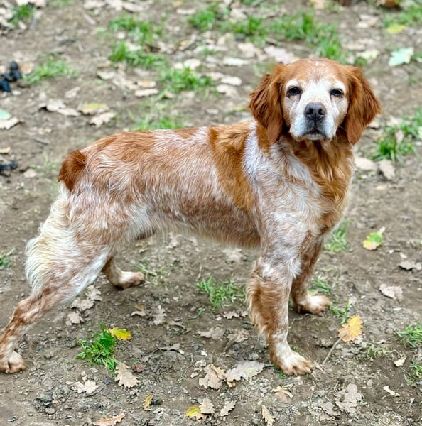 Unser Bretonenmädchen Ginny ist ca 5 Jahre alt (Stand Nov 25), kastriert, geimpft, gechipt und negativ auf Leishmaniose und Ehrlichiose getestet, sprich, sie ist bereit sich auf die Reise in ihr Zuhause zu machen.