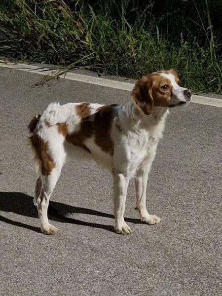 Unser Bretonenmädchen Nada ist ca 4 Jahre alt (Stand Nov 25), noch nicht kastriert und auch noch gar nicht lange bei Giusy und Vincenzo. Nada irrte namenlos, verloren auf der Straße umher und wurde zu ihrem Glück von den richtigen Menschen gesehen und in Obhut genommen. Danke!
