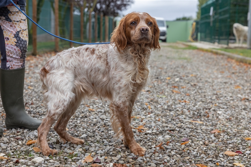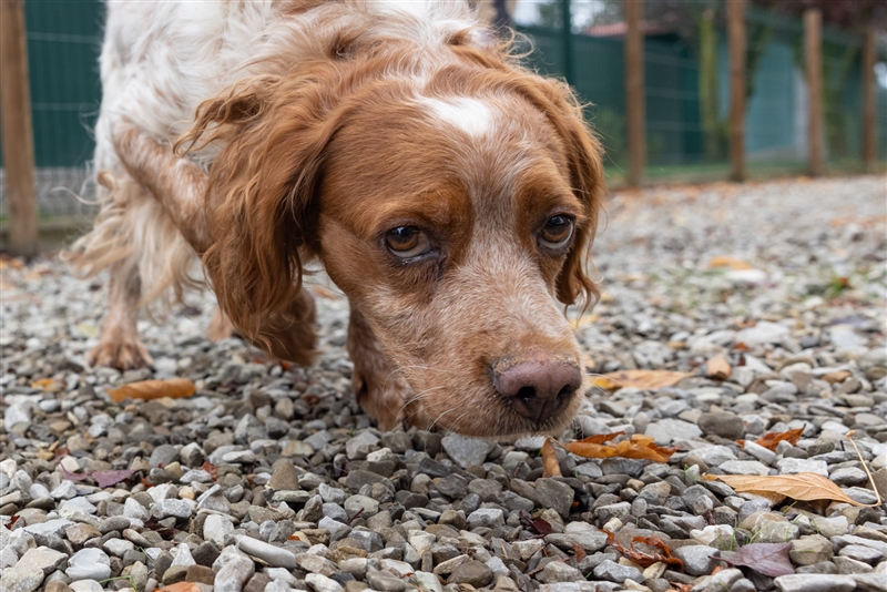 Dia ist eine freundliche und mit ihren Artgenossen verträgliche Hündin. Sie hat sich gut in das bestehende Rudel integriert, könnte aber auch gut als Einzelhund gehalten werden. Das Boxentraining hat die Bretonin gut gemeistert und die Box als Rückzugs- oder Schlafort angenommen. Auf Spaziergängen zeigt die Jagdhündin, wie viel Energie in ihr steckt, sie buddelt gerne und ausgiebig und ist vor allem an Mäusen interessiert. An Wild zeigt Dia kein Interesse.