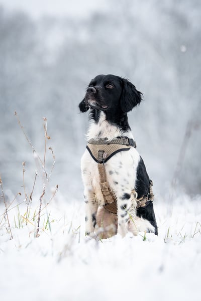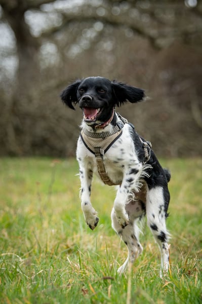Ganz der Bretone hat auch Oreo einen guten Jagdtrieb. Hier bedarf es noch viel Training und Kontinuität, damit Oreo besonders die Vögel in Ruhe ihre Kreise am Himmel ziehen lassen kann.