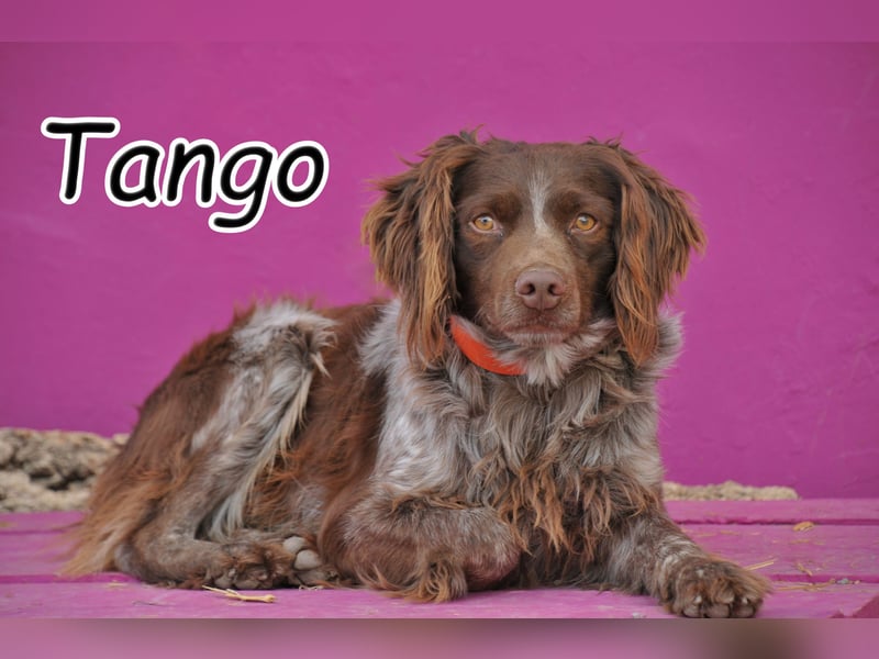 Tango ist ein junger Epagneul-Breton-Rüde, der mit seinem weichen, warmen Blick und seinem wunderschönen Fell sofort verzaubert. In seinen Augen liegt eine Mischung aus Neugier, Sanftheit und der leisen Hoffnung, endlich gesehen zu werden.