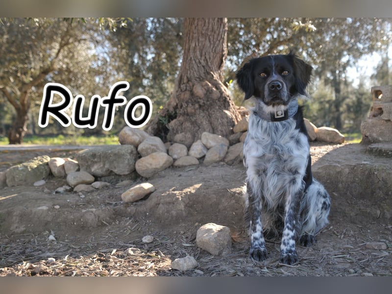 Rufo ist ein wunderschöner junger Bretone mit einem wachen Blick und einem sanften Herzen. Sein schwarz-weißes Fell wirkt wie gemalt und seine bernsteinfarbenen Augen erzählen von einem Hund, der bereit ist, die Welt zu entdecken – am liebsten an der Seite seiner Menschen. Noch lebt er bei unseren Freunden im spanischen Tierheim, doch man spürt sofort, dass in ihm so viel Lebensfreude steckt, die nur darauf wartet, endlich richtig gelebt zu werden.