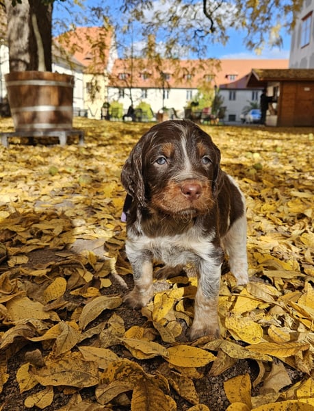 Charakter: verspielter, freundlicher, sanfter Vorstehhund. Eher ruhiger Hund mit Jagdinstinkt, den er von beiden Elternteilen geerbt hat (beide sind aktive Jagdhunde). Perfekt für eine aktive Familie oder als Arbeitshund für Jäger.