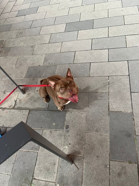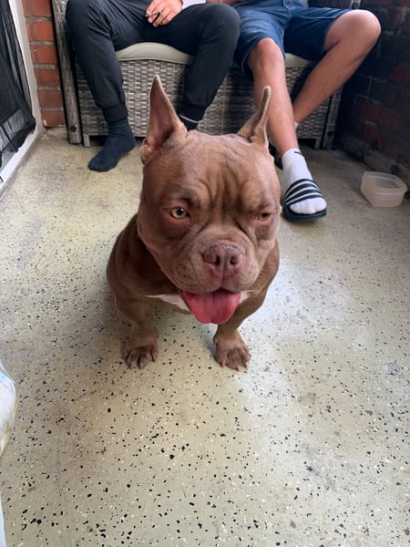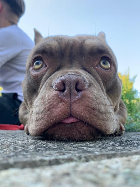 Schweren Herzens suche ich für meine wundervolle Exotic Bully Hündin Honey ein neues, liebevolles Zuhause.