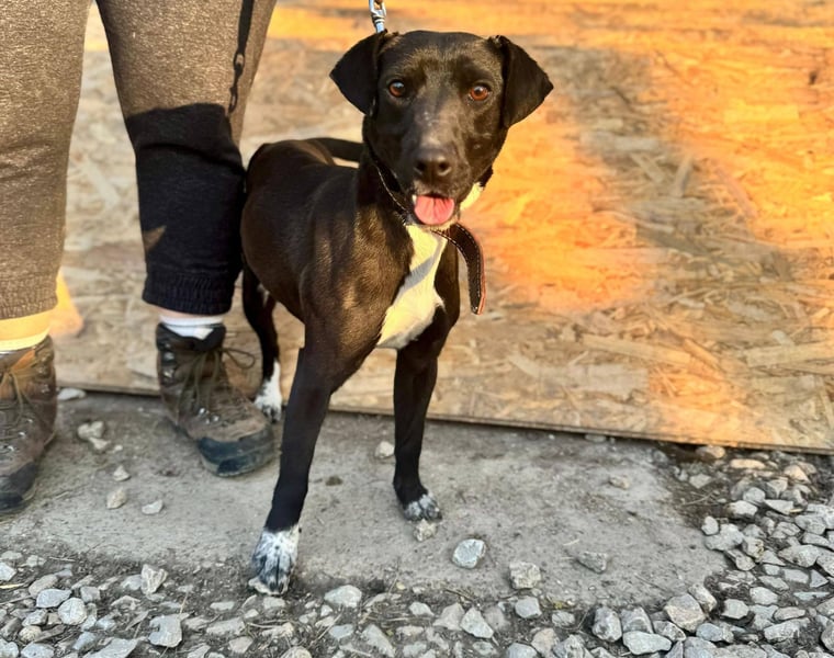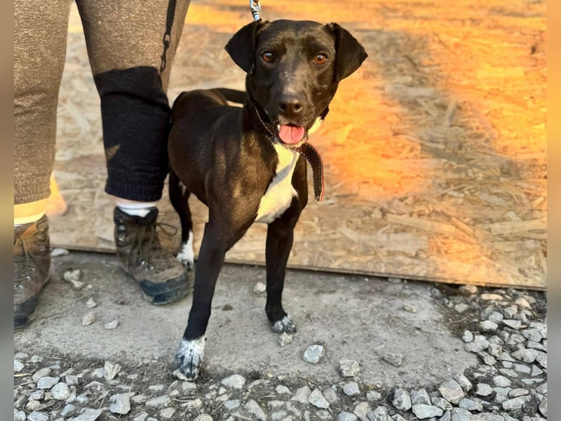 Die junge Suki, geboren am 25.09.2024, ist eine fröhliche und aktive Hündin mit einer Schulterhöhe von ca. 43 cm (41 cm Länge). Sie steckt voller Lebensfreude und liebt es, in Bewegung zu sein. Suki musste aus familiären Gründen abgegeben werden und sucht nun ein neues Zuhause, in dem sie wieder voll durchstarten darf. So zeigt sich Suki: freundlich und aufgeschlossen sehr aktiv und verspielt liebt Spaziergänge und Bewegung verträglich mit anderen Hunden und Hündinnen kennt den Umgang mit Kindern und ist mit ihnen aufgewachsen Aufgrund ihrer lebhaften Art – sie springt vor Freude gerne herum – sollten Kinder im neuen Zuhause bereits etwas standfester sein. Eine kleine Baustelle bringt Suki mit: Beim Füttern sollte man ein Auge auf sie haben, da sie dazu neigt, auch mal an den Napf anderer Hunde zu gehen. Mit etwas Training und klaren Regeln lässt sich das jedoch gut in den Griff bekommen. ✔ kastriert ✔ gechippt ✔ geimpft Suki sucht aktive Menschen oder eine Familie, die Spaß an Bewegung hat und ihr die nötige Auslastung sowie liebevolle Führung bieten kann. Bei Interesse freuen wir uns über eine Nachricht mit einer kurzen Vorstellung! Suki wartet darauf, gemeinsam mit ihren Menschen durchs Leben zu springen.