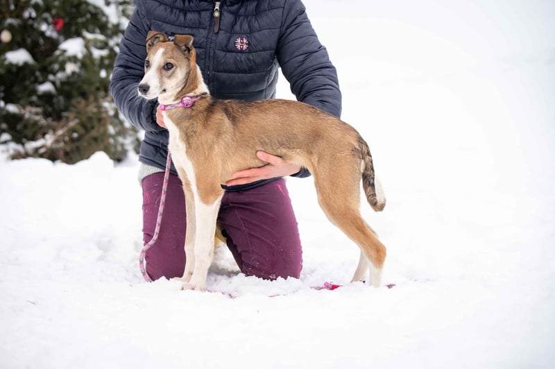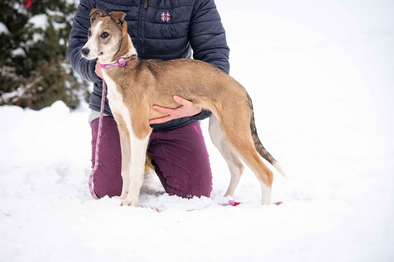 Mit anderen Hunden ist sie verträglich und teilt sich problemlos ihren Kennel mit mehreren Artgenossen.