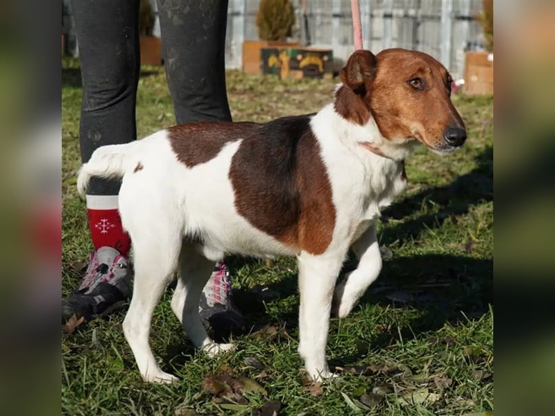 Name: Fixi Alter: von ca. 10.2024 Rasse: Foxterrier-Mischling Geschlecht: Rüde Kastriert: vor Ausreise Gewicht: 5 kg Schulterhöhe: 42 cm Fixi – ein liebenswerter Schatz sucht sein Zuhause Update 30.11.2025 Fixi ist in seiner Pflegefamilie in 47574 Goch angekommen und kann dort bald kennengelernt werden. Update: Fixi reist am 30.11.2025 n eine Pflegefamilie nach 47574 Goch und kann dort bald kennengelernt werden. Fixi ist ein unglaublich lieber und aufgeschlossener Rüde, der Anfang Oktober 2025 in der Nähe von Mezötúr (Ungarn) auf einem Deich neben einem Fluss gefunden wurde. Ein Jogger entdeckte ihn dort und brachte ihn sofort in unser Partnertierheim Koborka in Mezötúr, wo er nun fürsorglich versorgt und aufgepäppelt wird. Im Tierheim zeigt sich Fixi als äußerst freundlicher und menschenbezogener Hund. Für seine Rasse ist er eher ruhig und genießt jede liebevolle Zuwendung, die er bekommen kann. Auch mit seinen Artgenossen versteht sich Fixi bestens und begegnet ihnen offen und sozial. Fixi wünscht sich ein Zuhause bei Menschen, die ihm Liebe, Aufmerksamkeit und ein warmes Plätzchen im Herzen schenken. Er bringt die besten Voraussetzungen für einen treuen Begleiter mit und wird seinen Menschen viel Freude bereiten. Fixi wird über die Hundehilfe Piroschka e.V. vermittelt.