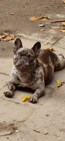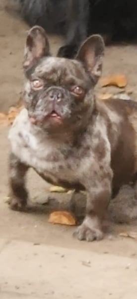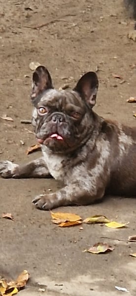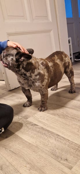 Roy ist eine 3 Jahre alte Französische Bulldogge in der wunderschönen Farbe Schokolade Merle.