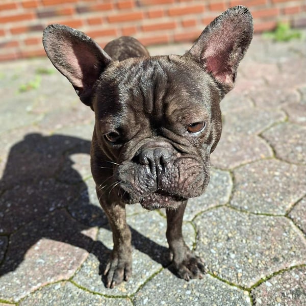 Qualzucht-Hinweis: Bei der Rasse Französische Bulldogge handelt es sich um eine Qualzucht. Zu den Qualzuchtmerkmalen gehört v.a. Brachycephalie und die damit verbundene Atemnot, aber auch ein erhöhtes Risiko für Bandscheibenvorfälle und Erkrankungen wie Allergien. Interessent*innen sollte bewusst sein, dass damit auch potentiell hohe Tierarztkosten einhergehen könnten. Bitte unterstützt die weitere Produktion von Qualzuchten nicht durch den Kauf beim Züchter/Vermehrer, sondern adoptiert betroffene Rassen ausschließlich aus dem Tierschutz.