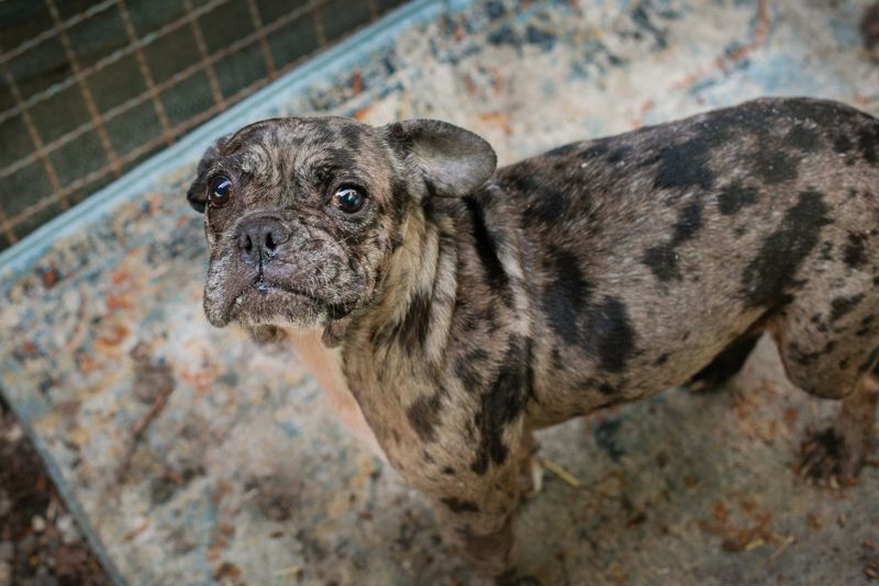 Franka und zwei weitere Leidensgenossen mussten ihr Leben bei einem Züchter verbringen. Dort lebten die Tiere in unglaublich schlechten Verhältnissen. Die Tiere waren einfach nur verwahrlost, ungepflegt, sich selbst überlassen und mit Entzündungen und Parasiten übersäht.