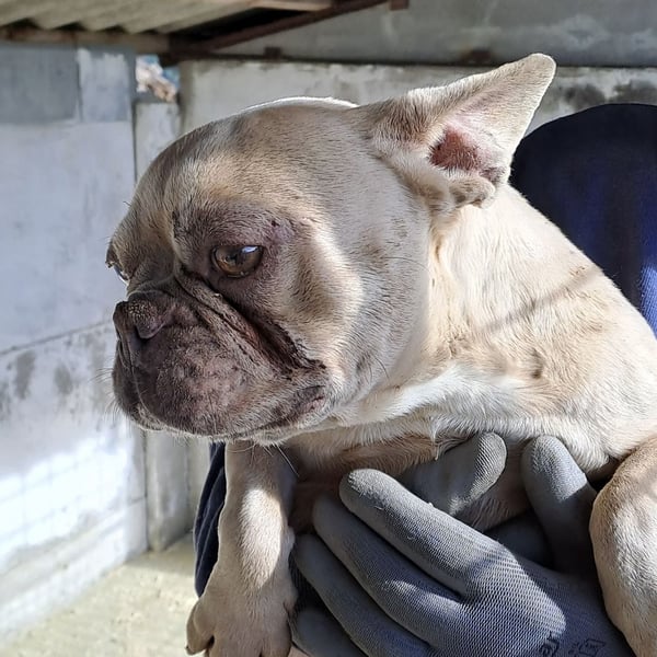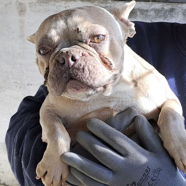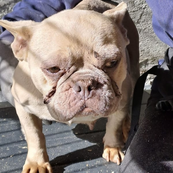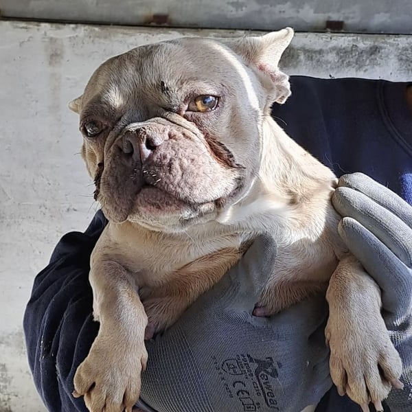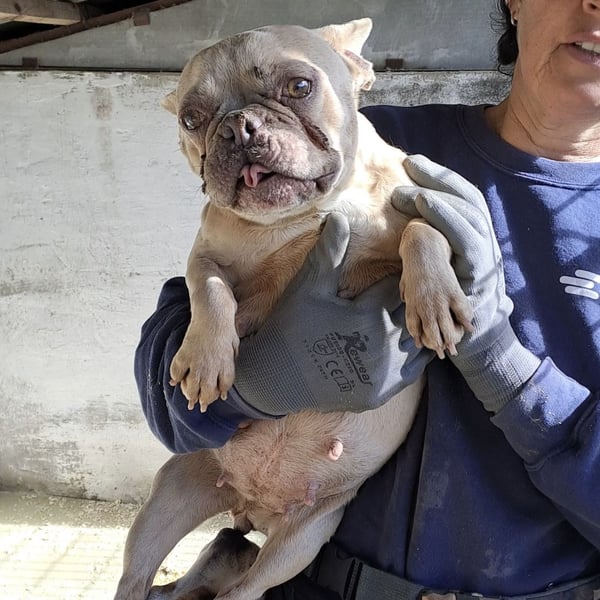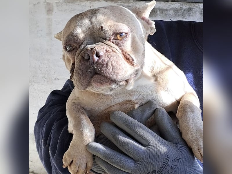 Nun sucht sie ein liebes Zuhause mit Menschen, die sich um sie kümmern möchten, möglichst mit Bulldoggen Erfahrung.