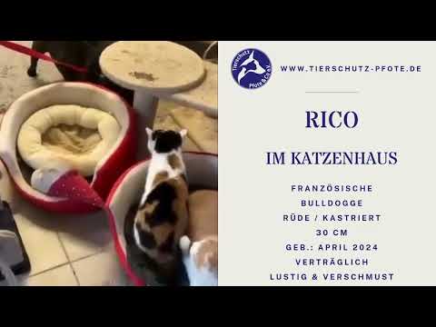 Rico, eine französische Bulldogge, wurde ca. im April 2024 geboren. Er lebt seit November 2025 im Tierheim, nachdem er von seinem Vorbesitzer dort abgegeben wurde, ohne dass eine Begründung angegeben wurde.