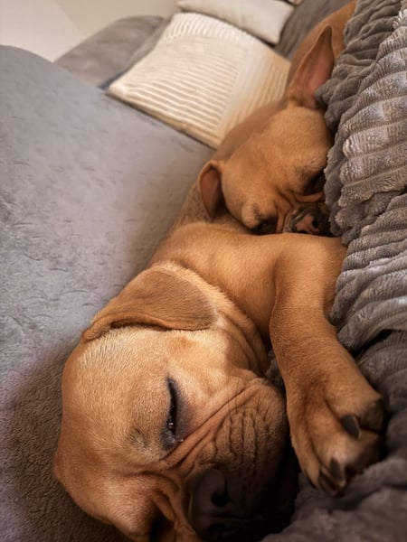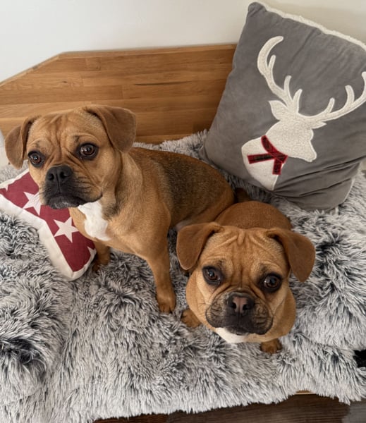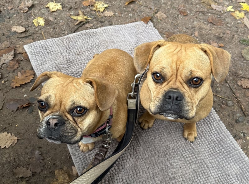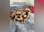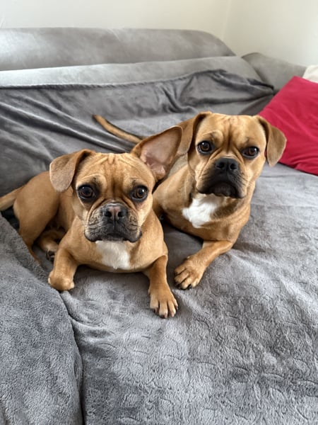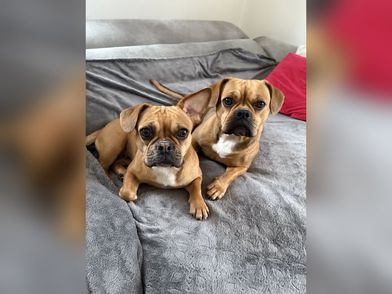 Wir suchen auf diesem Weg aufgrund einer Trennung ein neues, liebevolles Zuhause für Wilma(14kg) und Betti(9kg). Sie sind Schwestern aus einem Wurf und 3 Jahre alt. Der Vater war eine französische Bulldoge, die Mutter ein Beagle-fr.Bulldogge Mischling. Wir haben damals gezielt nach einer solchen Verpasrung gesucht, um den rassetypischen Krankheiten aus dem Weg zu gehen. Durch die Rute und längere Schnauze ist das gut gelungen. Wir würden sie gerne zusammen vermitteln, weil sie sehr lieb miteinander sind, müssen die Option sie getrennt zu vermitteln aber in Betracht ziehen. Bei Fragen gerne melden.