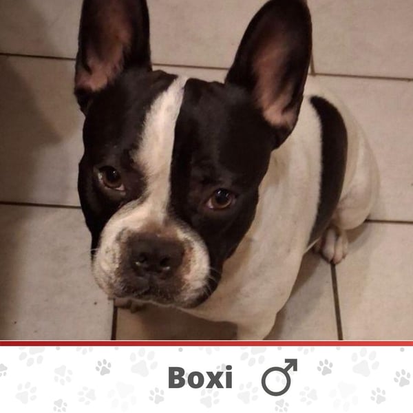 Zuhause ist BOXI ruhig, freundlich, sehr Menschenbezogen, stubenrein, anhänglich, lernfreudig, kann alleine sein und macht nichts kaputt.