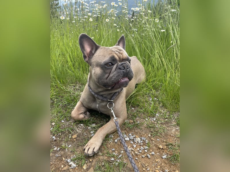 Schweren Herzens geben wir unseren Manfred (Franz. Bulldogge, 6J., Rüde) aus privaten Gründen ab. Kastr., geimpft, gechippt, blue-fawn, gut erz., Kommandos bek., kann allein bleiben. Sehr lieb & anhänglich. Nur in liebevolle Hände.