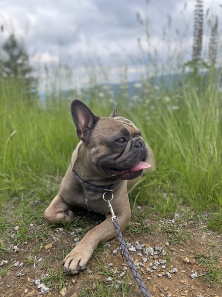 Manfred ist eine 6-jährige Französische Bulldogge (Rüde), kastriert, geimpft und gechippt, mit Papieren und Ahnentafel. Seine Farbe ist blue-fawn.