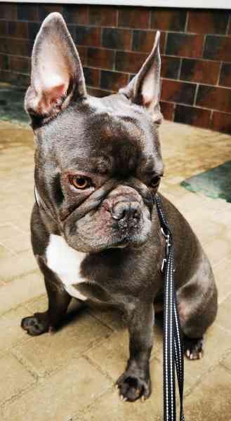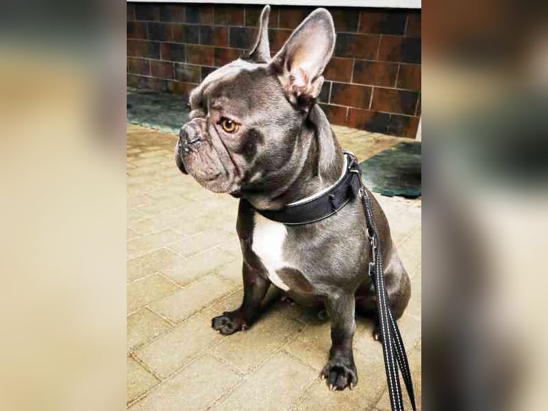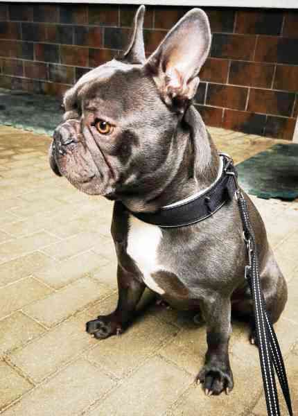 Olli ist eine XL Französische Bulldogge in blau weiß.