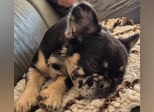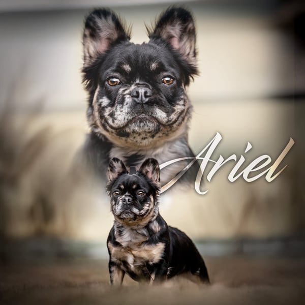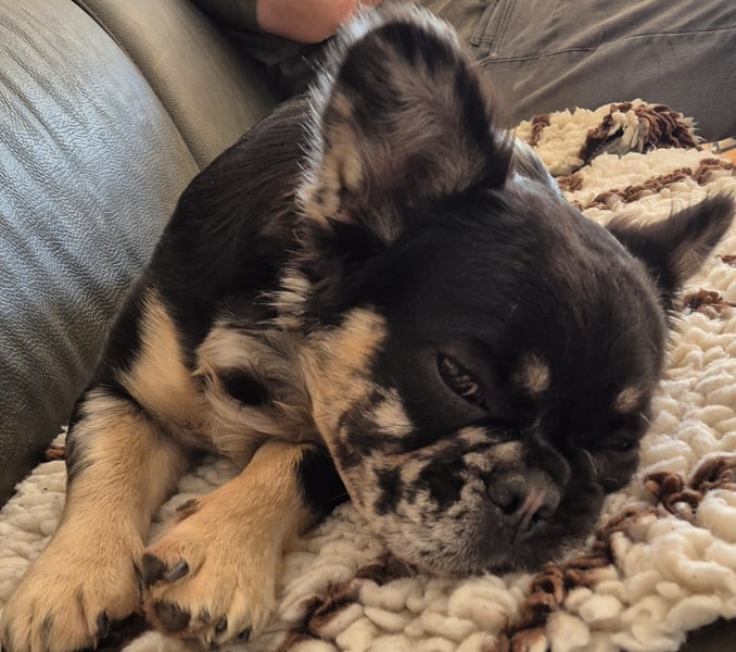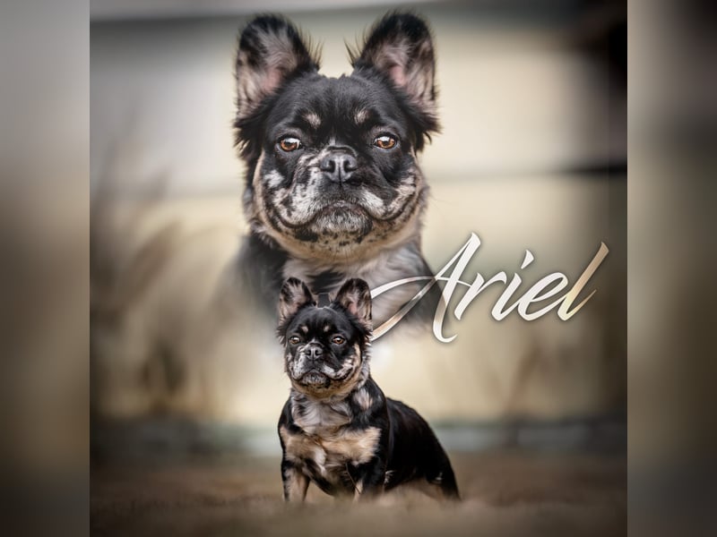 Black-merle-tan Fluffy Hündin Französische bulldogge