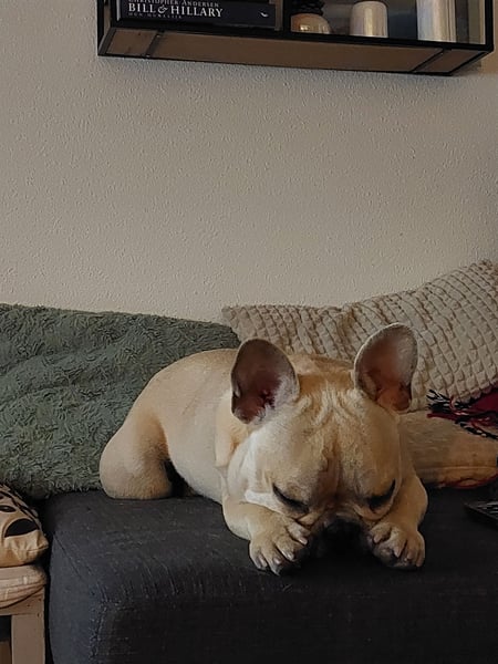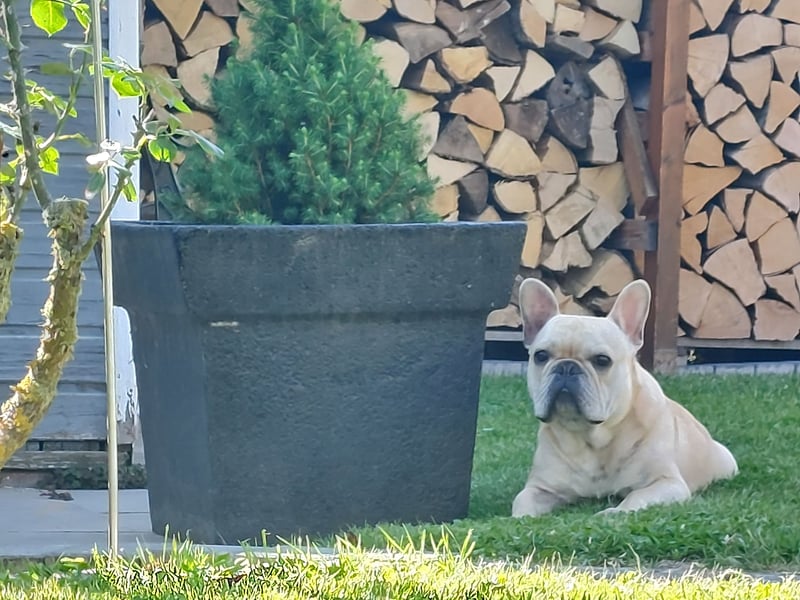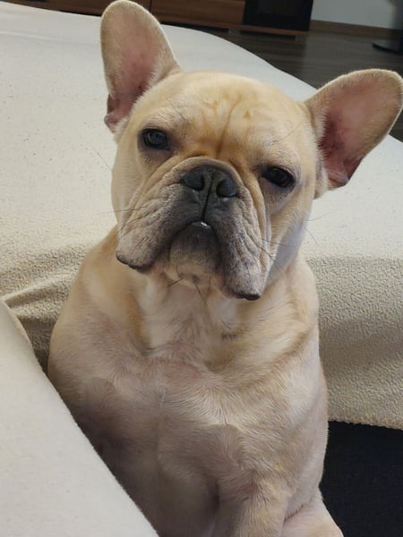 Er ist eine reinrassige Französische bulldogge.
