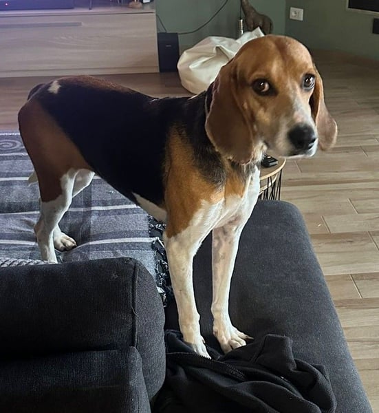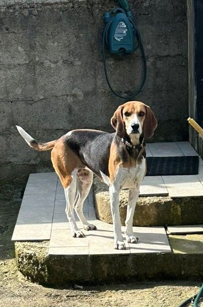 Luna, die wahrscheinlich eine reinrassige Anglo-Francais de Petite Vénerie ist, wurde, in Kalabrien auf der Straße herumirrend, von italienischen Tierschützern geborgen und zunächst auf einer privaten Pflegestelle in Sicherheit gebracht.