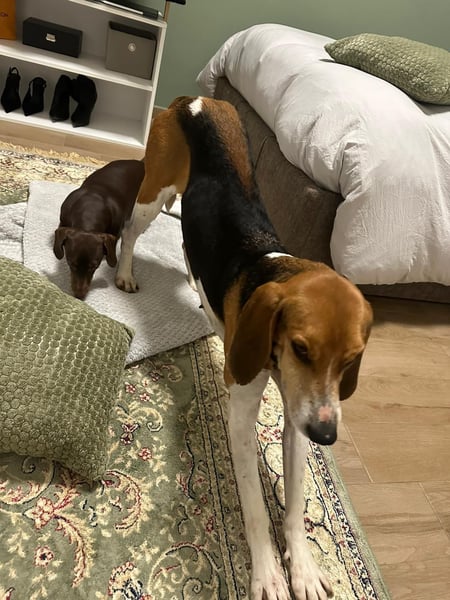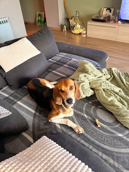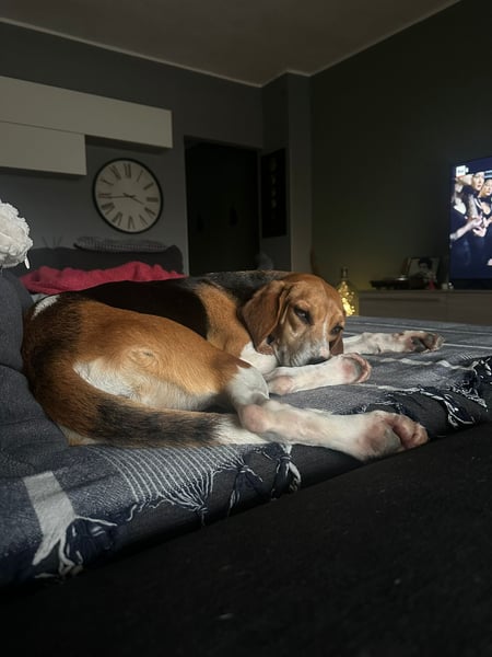 Luna dürfte ‚von Hause aus‘ ein Laufhund sein,- wohlmöglich ein Mischling mit zumindest wesentlichen Anteilen von Beagle und Segugio.