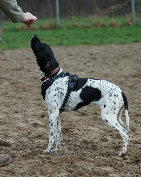 Sie ist sehr lernfähig und hätte großes Potenzial für Beschäftigungen wie Mantrailing, intensive Nasenarbeit oder sogar eine Ausbildung zum Rettungshund.