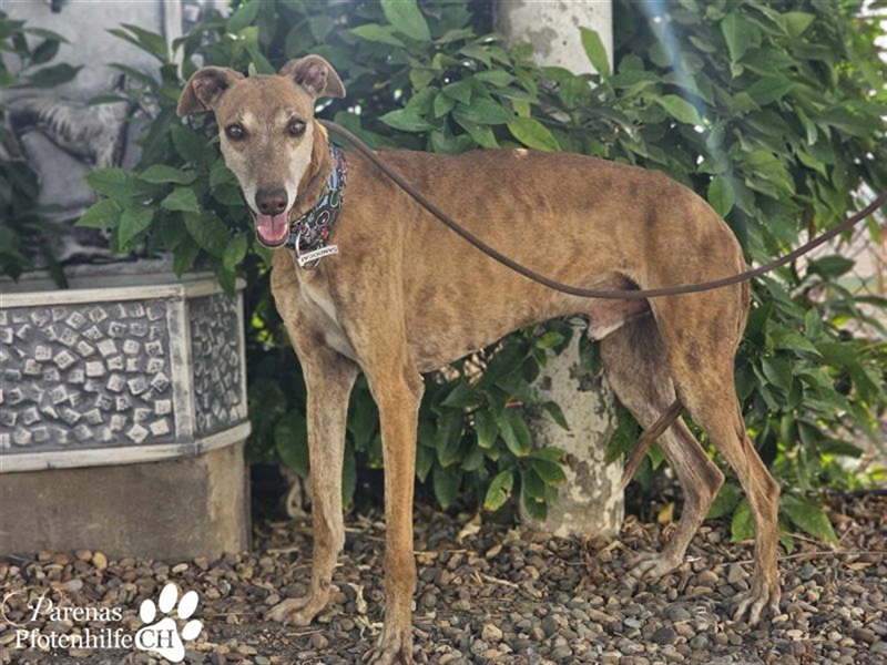 Sandocan ist ein sportlicher, intelligenter Galgorüde, der mit seiner fröhlichen und ausgeglichenen Art in der Gruppe super zurechtkommt. Er versteht sich gut mit anderen Hunden und meidet Konflikte. Menschen findet er grossartig und geniesst es ausgiebig zu schmusen. Suchst du einen treuen Wegbegleiter, egal ob für Spiel und Sport draussen oder fürs gemütliche Kuscheln auf dem Sofa – unser stets freundlicher und aufmerksamer Sandocan wartet auf deine Anfrage!