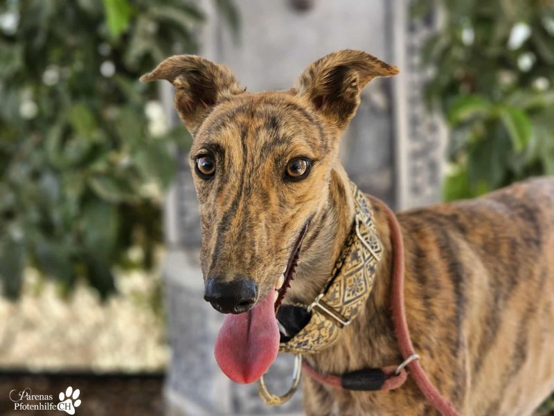 Hinoki ist ein eleganter Galgorüde mit Marmorkuchen-Optik. Anfangs ist der Hübsche manchmal noch etwas schüchtern, doch bald zeigt er sich als fröhlicher, verschmuster Zeitgenosse. Konflikten geht er als friedfertiger, junger Mann eher aus dem Weg, sodass er sich mit Hunden aller Größen und sogar Katzen gut verträgt. Neugierig auf die Welt und ein eigenes Zuhause wartet Hinoki nun darauf, von seiner Familie entdeckt zu werden.