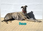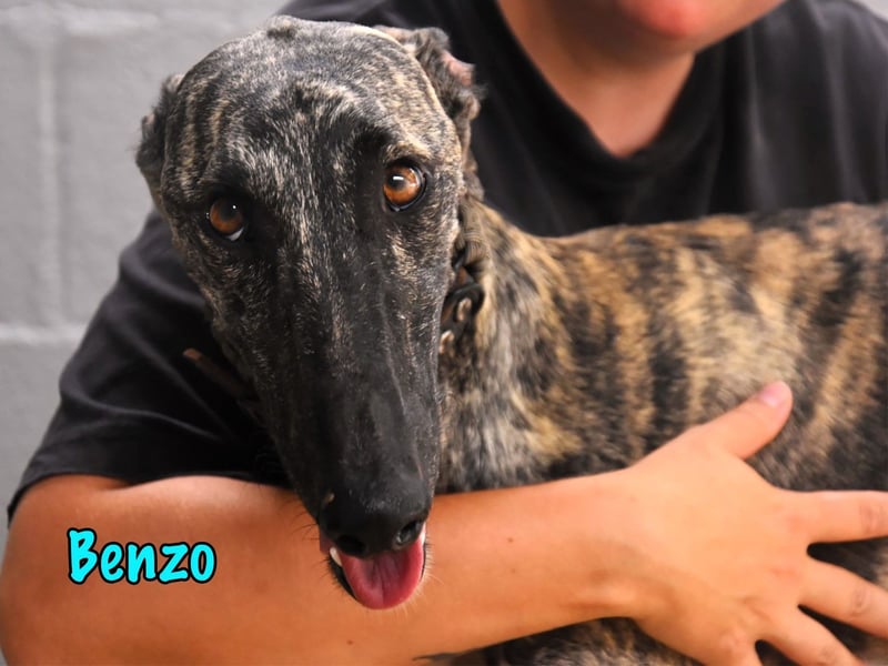 Benzo wurde zusammen mit Blanca von einem Galguero gerettet. Mit seinen eineinhalb Jahren galt er dort bereits als „alt“ – zum Glück, denn so musste er nicht so lange leiden wie die ältere Hündin Blanca. Er ist ein sehr schöner und eleganter Galgo, freundlich, fröhlich und verspielt. Benzo ist menschenbezogen, sozial und kommt gut mit anderen Hunden aus. An der Leine läuft er bereits sehr gut. Vor kurzem durfte er uns in ein Altersheim begleiten, das wir regelmäßig mit unseren Hunden besuchen. Dort hat er sich vorbildlich verhalten und hatte viel Spaß – er spielte liebevoll mit den Bewohnerinnen und Bewohnern und genoss die gemeinsame Zeit. Ein wirklich toller Galgo.
