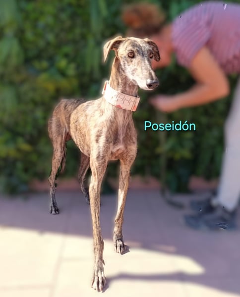 Der wunderschöne Poseidón ist ein junger Galgo Español, geboren im Mai 2024. Er wurde von seinem Jäger in Murcia ausgesetzt und kam im September 2025 in unsere Obhut. Poseidón ist ein unglaublich lieber, ruhiger und edler Hund. Zu Beginn war er sehr schüchtern, doch er hat in kurzer Zeit beachtliche Fortschritte gemacht und öffnet sich zunehmend. Trotz seiner Zurückhaltung zeigt er großes Vertrauen, lässt sich an der Leine führen – sogar von ihm unbekannten Menschen – und bleibt dabei ruhig. Er ist freundlich, sanft und unterwürfig gegenüber Menschen und anderen Hunden. Für Poseidón wünschen wir uns eine einfühlsame und erfahrene Familie, die ihm Zeit gibt, weiter Vertrauen zu fassen. Ein bereits vorhandener, souveräner Hund wäre für ihn eine große Hilfe und Orientierung.