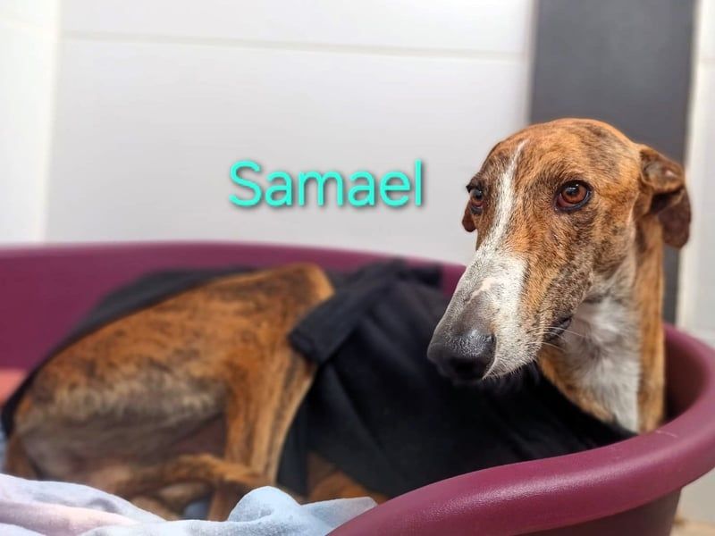 Samael wurde in Murcia vermutlich von einem Jäger ausgesetzt. Samael ist ein wunderschöner Galgo mit einem sehr edlen und sanften Charakter, der jedoch noch etwas schüchtern ist. Er ist ein wahrer Schatz – groß, mit einem ausdrucksstarken, tiefen Blick. Leider wurde er in der Vergangenheit misshandelt, weshalb er etwas Zeit braucht, um sich an neue Situationen zu gewöhnen und Vertrauen aufzubauen. Er ist nicht übermäßig ängstlich: er gerät nicht in Panik, zittert nicht und zeigt keinerlei Aggression. Er braucht lediglich Geduld und ein ruhiges Umfeld, um zu lernen, dass er in Sicherheit ist. Mit anderen Hunden ist Samael absolut unkompliziert – freundlich, unterwürfig und ein echter Mitläufer. Er akzeptiert jeden anderen Hund als Anführer und spielt gerne mit verspielten Hunden, obwohl er selbst eher ruhig ist. Anfangs hatte er Angst vor der Leine aber inzwischen kann er wunderbar an der Leine laufen. Samael wünscht sich eine Familie mit Erfahrung im Umgang mit ängstlichen Hunden und mindestens einem ausgeglichenen Ersthund, an dem er sich orientieren kann. Er ist ein sanfter, nobler Hund, der es mehr als verdient hat, endlich ein liebevolles Zuhause zu finden.