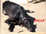 Petra4 hatte überall Wunden, ihr Fell war schlecht und sie wollte sich schon aufgeben. Inzwischen sind die Wunden verheilt und sie nimmt auch langsam zu. Und vor allen Dingen gibt es wieder Hoffnung in ihren Augen. Petra4 ist eine sehr liebe, menschenbezogen Galga. Sie wünscht sich nichts sehnlicher, als ein Zuhause zu finden, wo sie all das Leid vergessen kann und einfach nur glücklich sein darf.