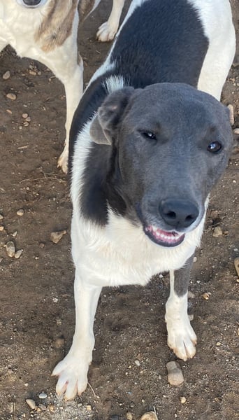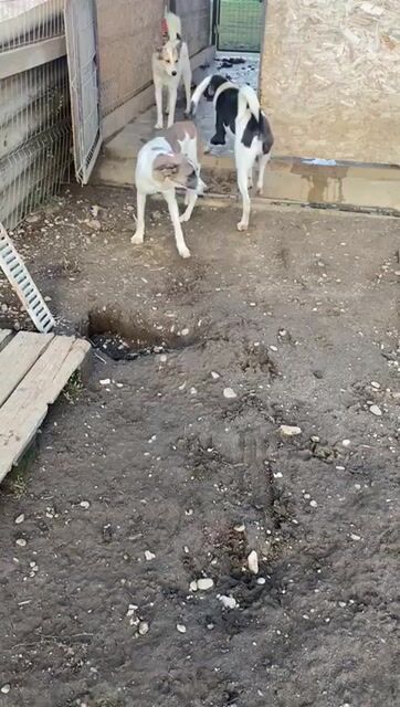 Mittlerweile wiegt Poxi etwa 30 kg und ist ca. 65 cm groß – ein wunderschöner, sportlicher Rüde mit einem offenen Wesen und großem Herzen. Poxi müsste ein Galgo Espanol-Mix sein.