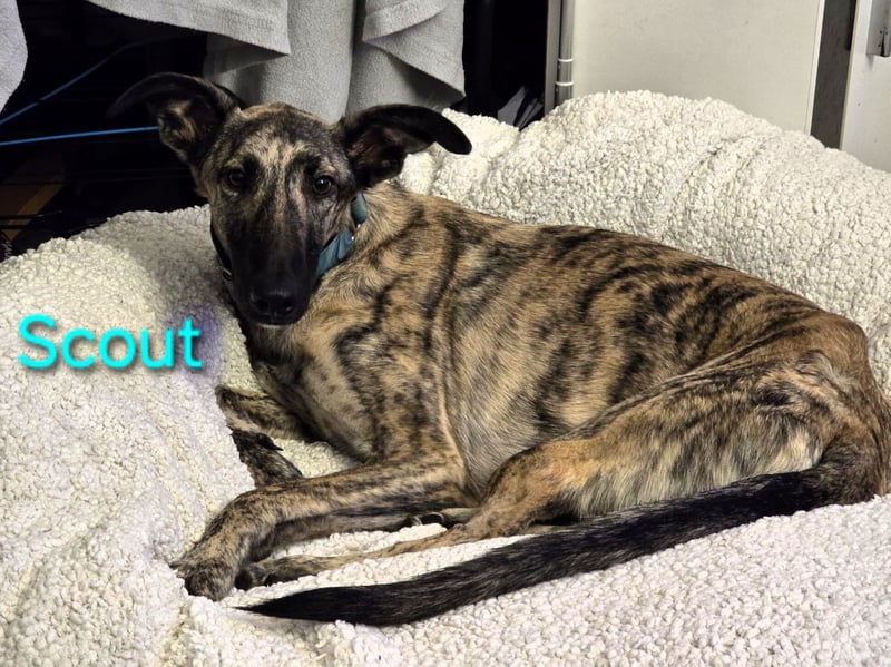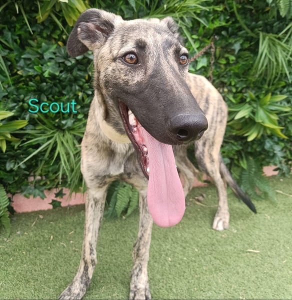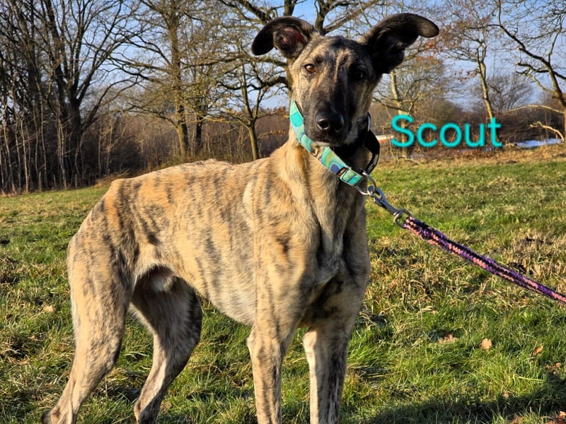 Scout ist ein wunderschöner Galgo Mix und wird am 20.12. zwei Jahre alt. Durch seinen langen Aufenthalt in spanischen Tierheim hat Scout nicht viel kennenlernen können wodurch der sensible Rüde in vielen Situationen sehr unsicher reagiert. Mit anderen Hunden versteht er sich super, nur sollten diese aufgrund seiner Power nicht allzu klein sein. Bisher zeigt er auf der Pflegestelle keinerlei Jagdtrieb und an der Leine läuft er schon sehr angenehm, es ist ihm anzumerken, dass er draussen wesentlich sicherer ist als im Haus. Scout benötigt viel Zeit und Einfühlungsvermögen um Sicherer zu werden. Wir wünschen uns für den tollen "Welpen im Erwachsenen Körper " ein ruhiges Zuhause ohne kleine Kinder und am besten ländlich gelegen, ein souveräner Zweithund wäre für Scout von großem Vorteil.