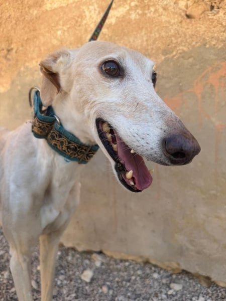 Sierra ist eine ältere Galga, die trotz ihres Ömchen-Chics noch einmal ankommen möchte. Sie ist nicht ängstlich, benötigt aber einen Moment, um sich umzuschauen, bis sie ihr Köfferchen ausgepackt hat. Wer möchte der Oma nochmal das schöne Leben zeigen?