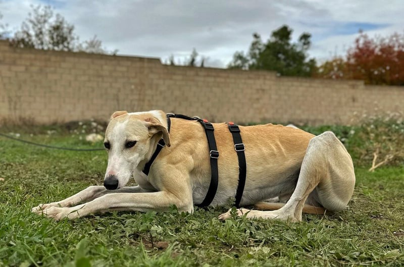 Gesichtet wurde er außerhalb von Villamalea, wo er offenbar schon einige Zeit gelebt hatte. Durch die Etablierung einer Fütterungsroutine konnten die Animaleas ihn nach zwei langen Wochen endlich in einer Falle sichern und ins Refugio bringen.