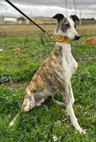 Merlín versteht sich gut mit anderen Hunden; sie geben ihm Sicherheit. Unbekannten Menschen gegenüber ist er ängstlich, und es dauert eine Weile, bis er seine Angst überwindet und Mut fasst.