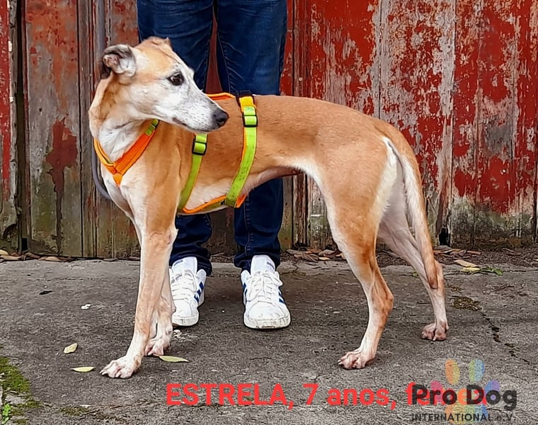 Estrela ist eine wunderschöne, unkomplizierte und angstfreie Galgo-Mischlingshündin, die ihr neues Zuhause sucht. Sie ist Menschen gegenüber super freundlich. Zudem ist Estrela sozial verträglich mit anderen Hunden, wobei ihr Rüden sympathischer sind.