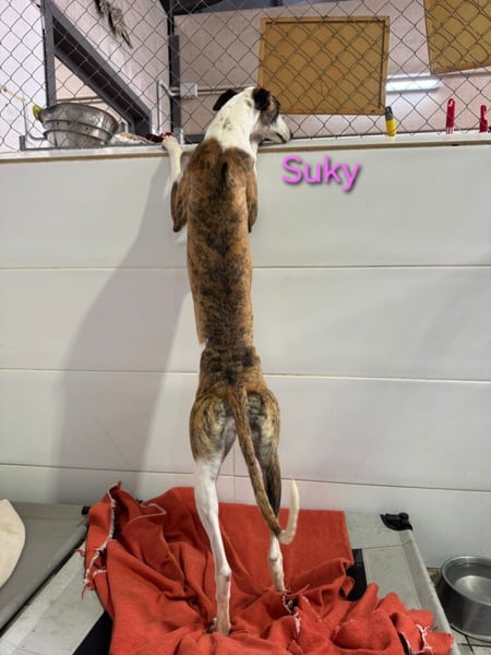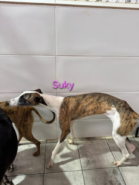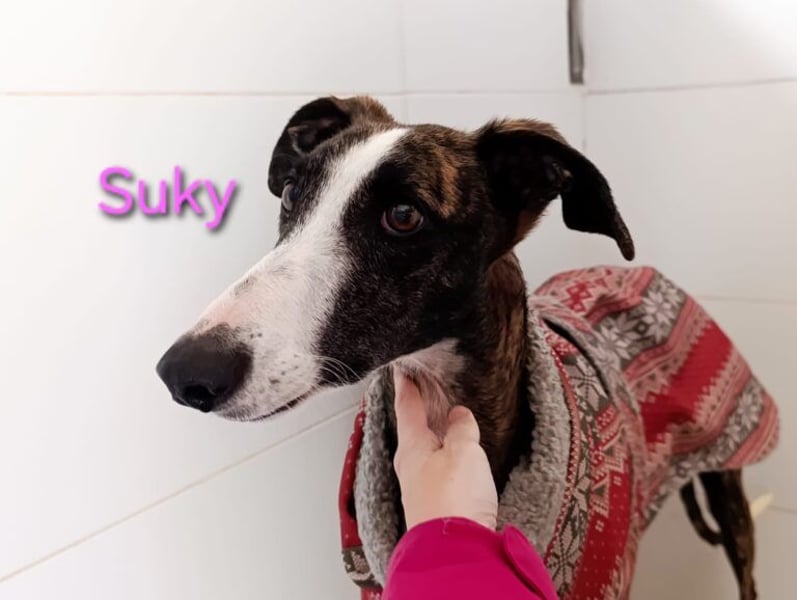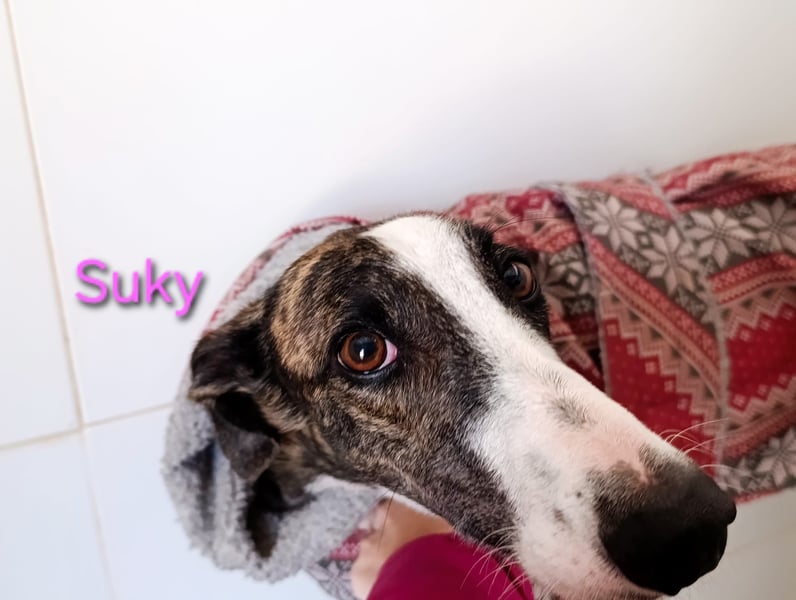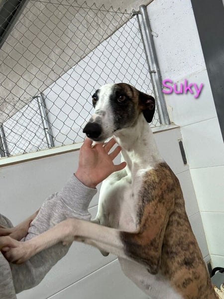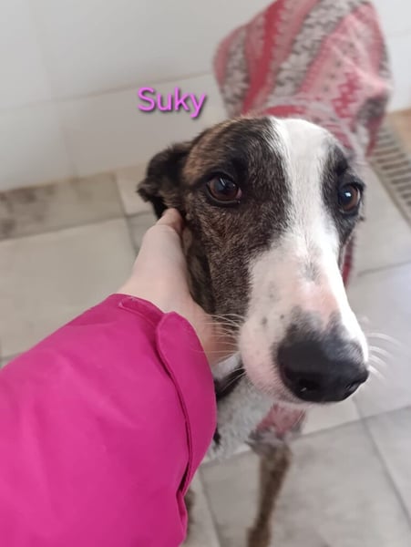 Suky ist sehr lieb, sie ist eine freundliche, fröhliche Galga ohne Ängste. Sie ist sympathisch, aber nicht übermäßig aktiv. Sie verhält sich sehr gut und kommt sowohl mit verspielten als auch mit ruhigeren Hunden problemlos zurecht. Sie verbringt den Großteil des Tages damit, auf ihrem Bett zu liegen und zu schlafen und genießt Spaziergänge im Park in der Sonne. Mit anderen Hunden ist sie sehr gut verträglich, nicht dominant.
