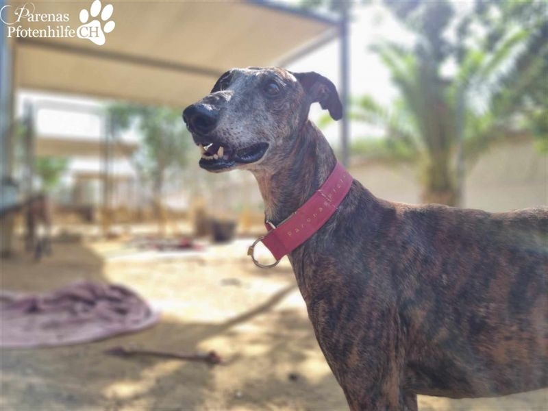Tagres ist ein gestandener Galgo, der recht genau weiß, was er will. Bei anderen Rüden und kleinen Hunden spielt er sich deshalb als Leader auf. Aber mit Hündinnen ist er gern zusammen und würde sie im neuen Zuhause akzeptieren. Menschen liebt Tagres über alles. Deshalb kann er auch zu Hundemenschen vermittelt werden, die erstmals einen Galgo in ihr Herz und auf ihr Sofa lassen wollen.